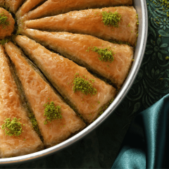 1946’dan beri Köşkeroğlu baklava üretiminde kullandığımız ürünlerimizin tümünü yerinden, coğrafyasından tedarik ediyoruz. Şekli itibari ile diğer baklava çeşitlerinden farklılık gösteren Havuç dilimi aynı zamanda hamur oranı düşük ve içerisinde bulunan iri parçacıklı Antep fıstıklarıyla adeta görsel şölen sunuyor. Dilerseniz arasına kaymak veya dondurma ile damak zevkinizi güçlendirebilirsiniz.